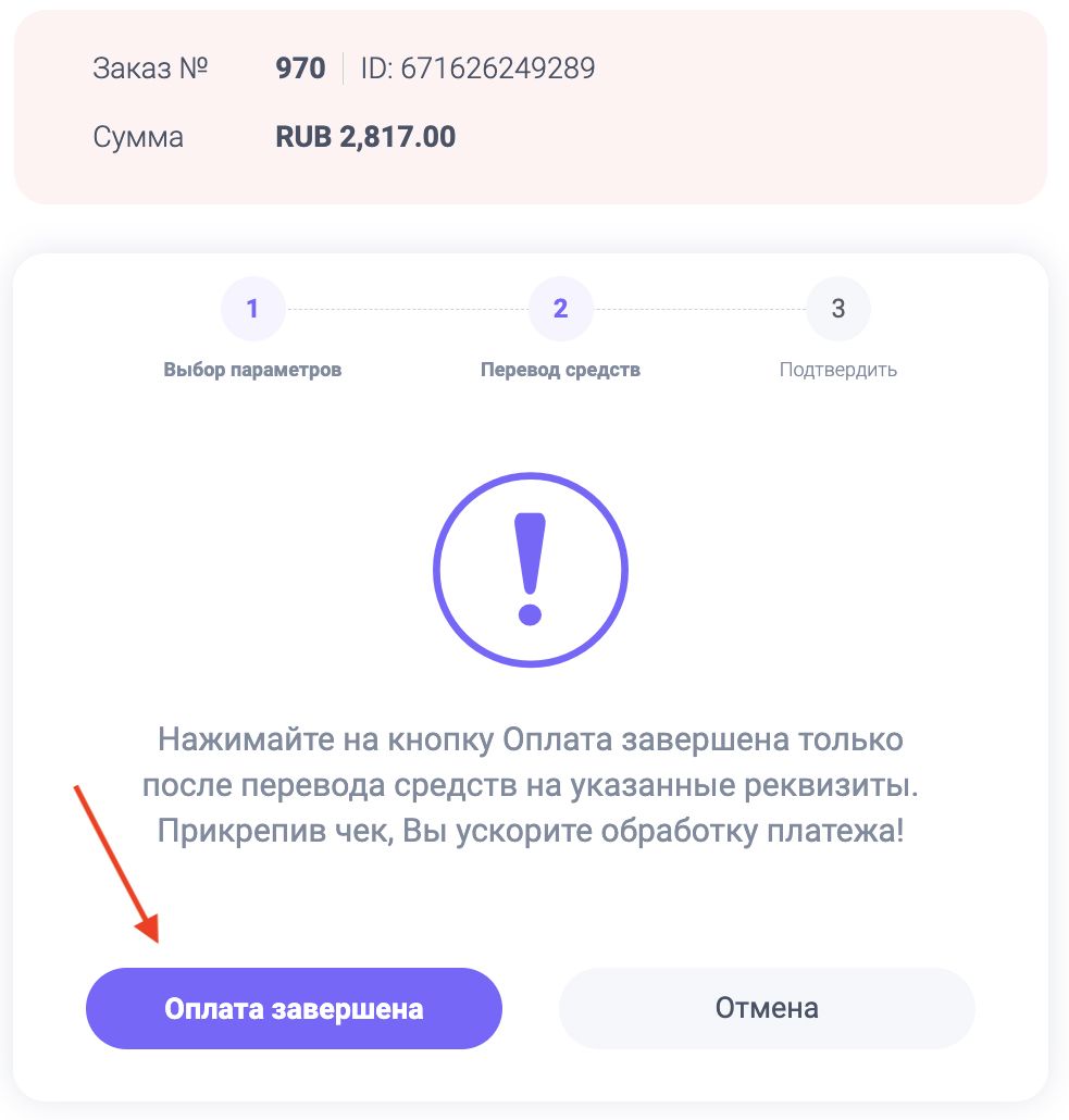 Нажимаем кнопку «Оплата завершена», если перевод был успешно отправлен и чек загружен в поле.